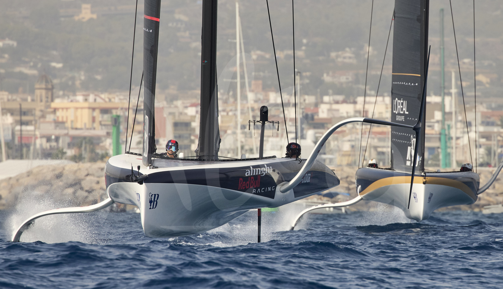 | Description | VILANOVA I LA GELTRU, SPAIN - SEPTEMBER 17: The Alinghi Red Bull Racing and Orient Express teams are pictured in action during the 37th America’s Cup pre-regatta in Vilanova i La Geltru, spain, on september 17th, 2023. (Photo by Carlo Borlenghi / Alea) |