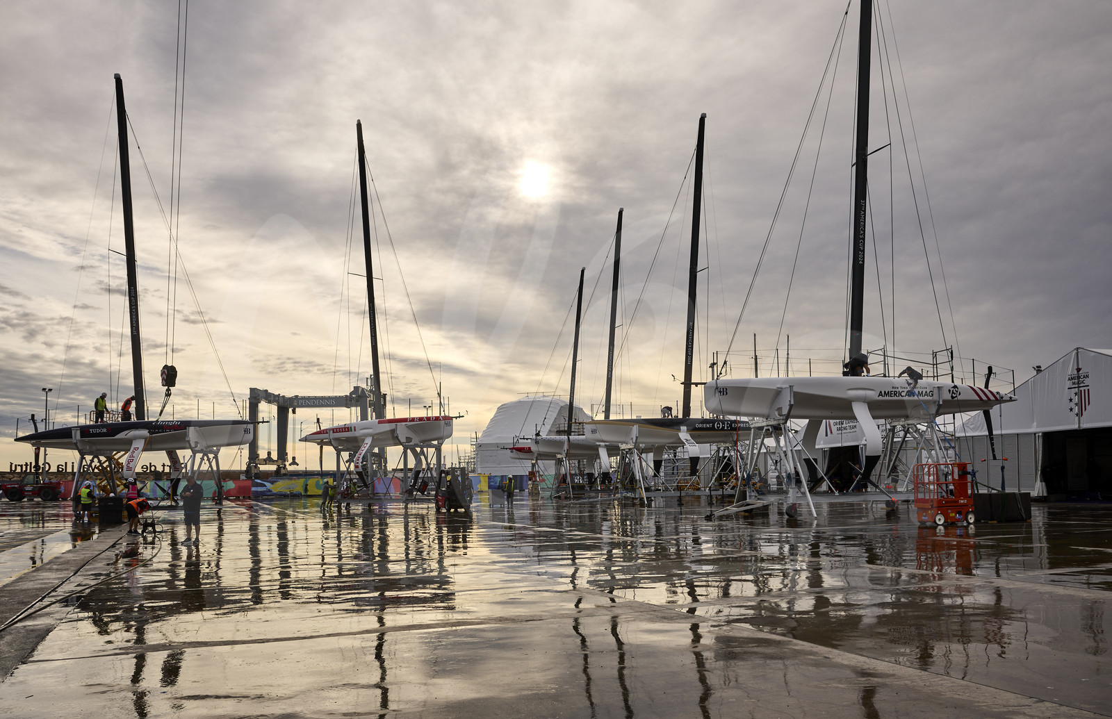 | Description | VILANOVA I LA GELTRU, SPAIN - SEPTEMBER 15: The competitors boats are illustrated off water during the 37th America’s Cup pre-regatta in Vilanova i La Geltru, spain, on september 15th, 2023. (Photo by Carlo Borlenghi / Alea) |