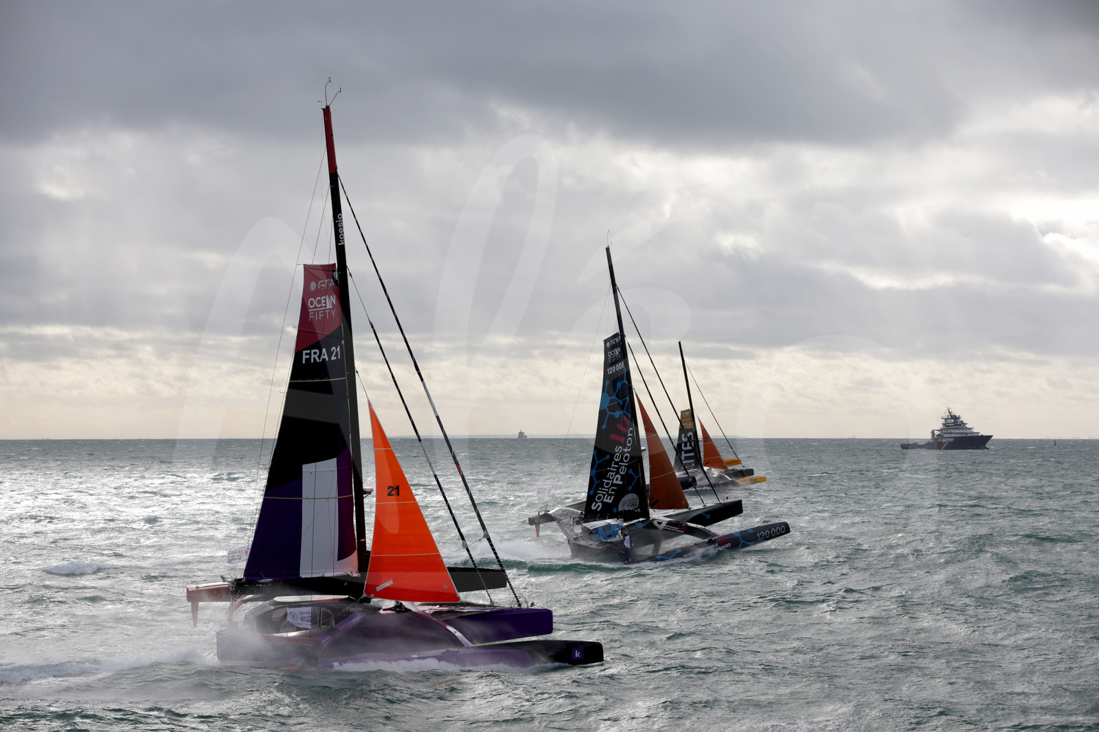 | Description | LE HAVRE, FRANCE - OCTOBER 29 : Ocean Fifty boats are taking the start of Transat Jacques Vabre in Le Havre, France, on October 29, 2023. (photo by Jean-Marie Liot / Alea) |