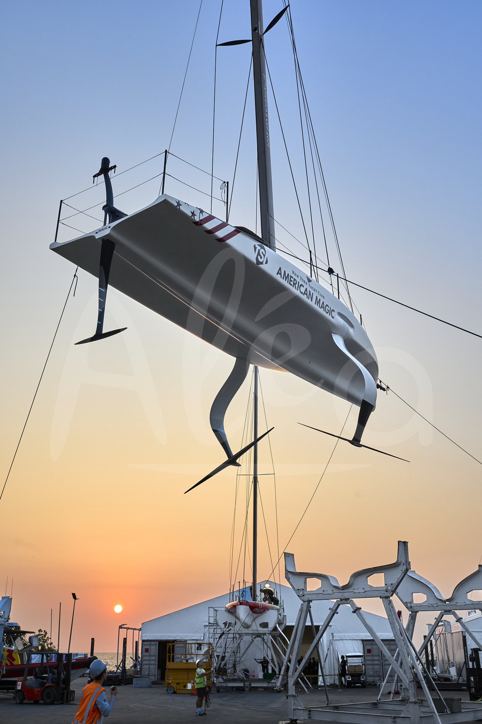 | Description | JEDDAH, SAUDI ARABIA - NOVEMBER 29: AC 40 American Magic AC 40 boat is pictured during the Preliminary Regatta held before the Louis Vuitton Cup, in Jeddah, Saudi Arabia, on November 29th, 2023. (photo by Carlo Borlenghi / Alea) |