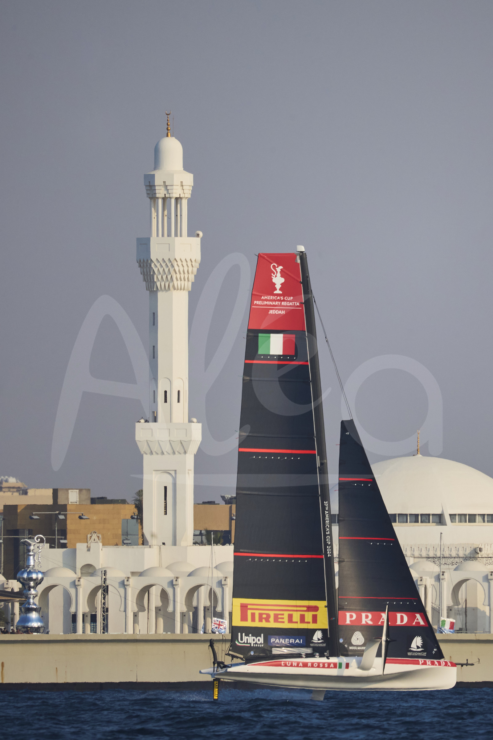 | Description | JEDDAH, SAUDI ARABIA - NOVEMBER 29: AC 40 Luna Rossa Prada Pirelli Team AC 40 boat is pictured during the Preliminary Regatta held before the Louis Vuitton Cup, in Jeddah, Saudi Arabia, on November 29th, 2023. (photo by Carlo Borlenghi / Alea) |
