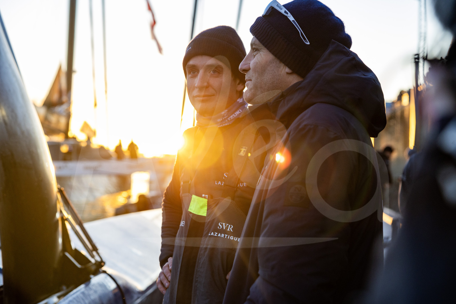 | Description | BREST, FRANCE - JANUARY 07 : SVR-Lazartigue skipper Tom Laperche is portraited with Maxi Edmond de Rothschild skipper Charles Caudrelier during start of the Arkea Ultim Challenge sailing race in Brest, France, on January 07, 2024. (photo by Jean-Marie Liot / Alea) |