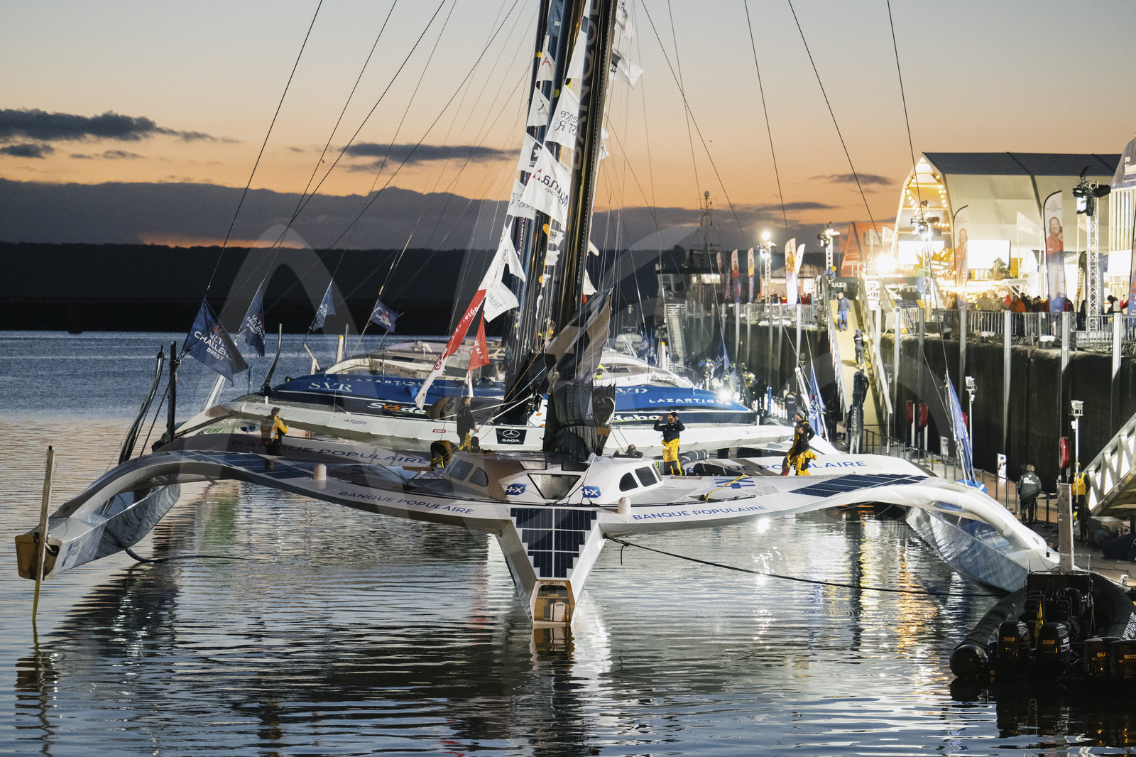 | Description | BREST, FRANCE - JANUARY 07 : Ultim boats are illustrated before start of the Arkea Ultim Challenge sailing race in Brest, France, on January 07, 2024. (photo by Vincent Curutchet / Alea) |