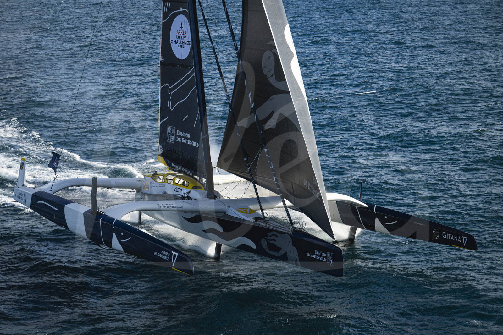 | Description | BREST, FRANCE - JANUARY 07 : Maxi Edmond de Rothschild is pictured during start of the Arkea Ultim Challenge sailing race in Brest, France, on January 07, 2024. (photo by Vincent Curutchet / Alea) |