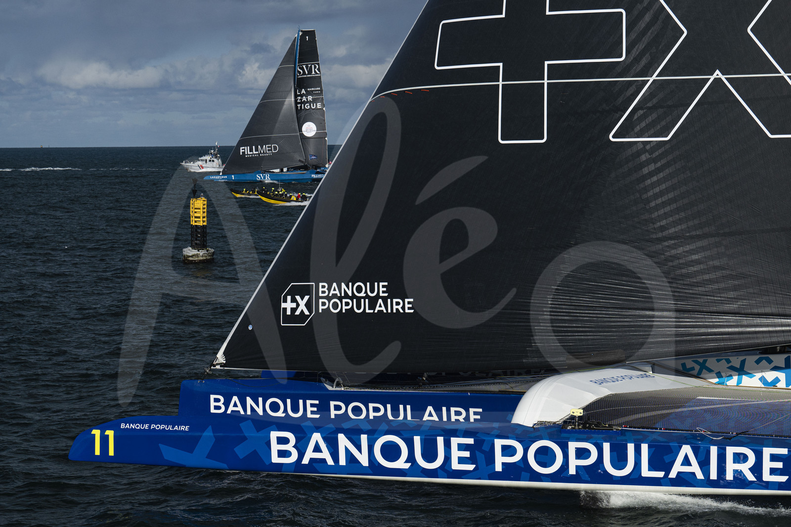 | Description | BREST, FRANCE - JANUARY 07 : Banque Populaire XI and SVR-Lazartigue are pictured during start of the Arkea Ultim Challenge sailing race in Brest, France, on January 07, 2024. (photo by Vincent Curutchet / Alea) |