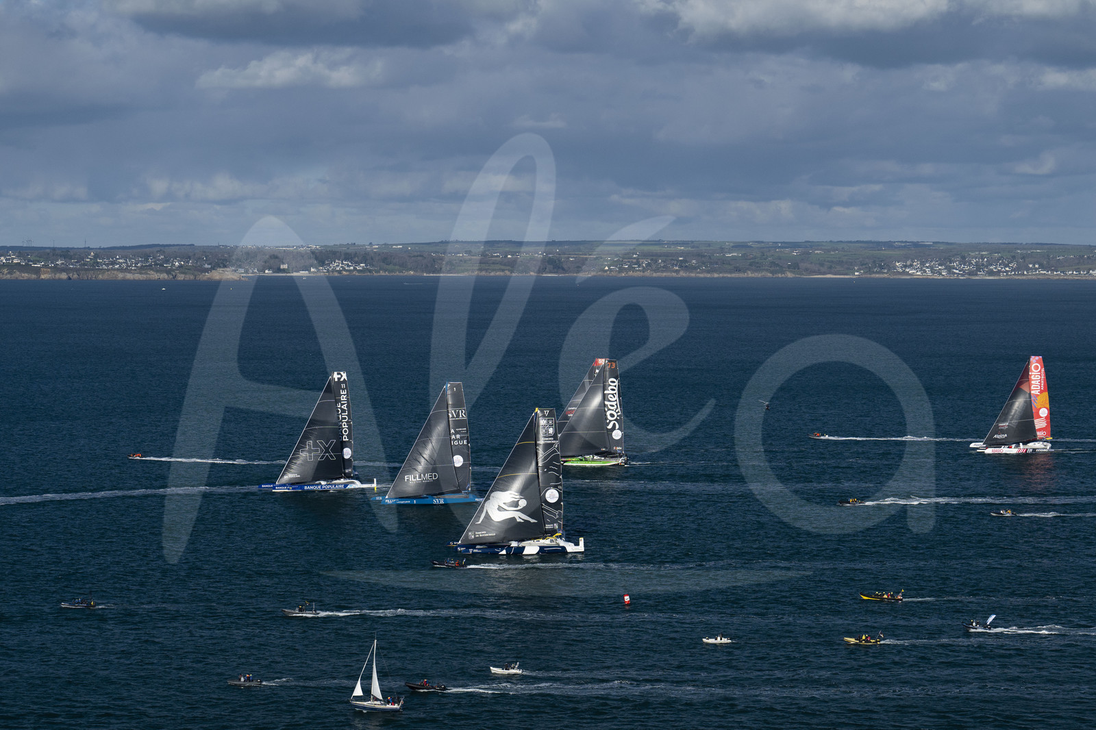 | Description | BREST, FRANCE - JANUARY 07 : Ultim boats are pictured during start of the Arkea Ultim Challenge sailing race in Brest, France, on January 07, 2024. (photo by Vincent Curutchet / Alea) |