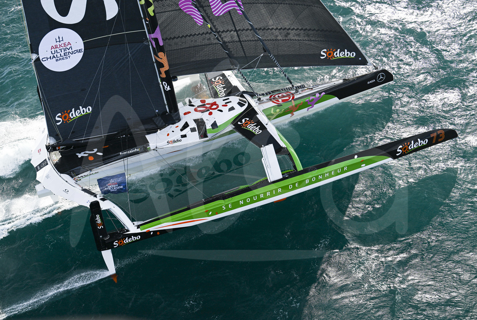 | Description | BREST, FRANCE - JANUARY 07 : Sodebo Ultim 3 is pictured during start of the Arkea Ultim Challenge sailing race in Brest, France, on January 07, 2024. (photo by Vincent Curutchet / Alea) |