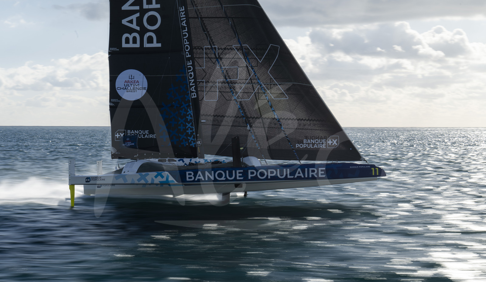 | Description | BREST, FRANCE - JANUARY 07 : Banque Populaire XI is pictured during start of the Arkea Ultim Challenge sailing race in Brest, France, on January 07, 2024. (photo by Vincent Curutchet / Alea) |