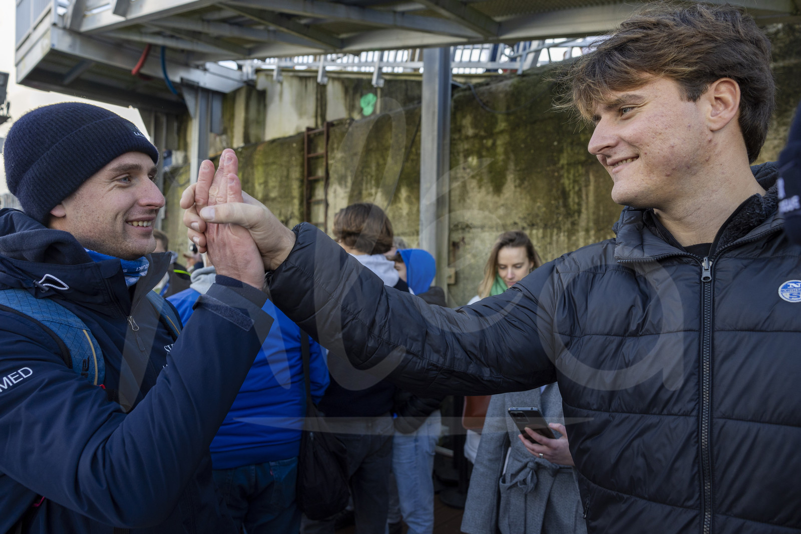 | Description | BREST, FRANCE - JANUARY 06 : SVR-Lazartigue, skipper Tom Laperche is portraited with Basile Bourgnon before start of the Arkea Ultim Challenge sailing race in Brest, France, on January 06, 2024. (photo by Jean-Marie Liot / Alea) |