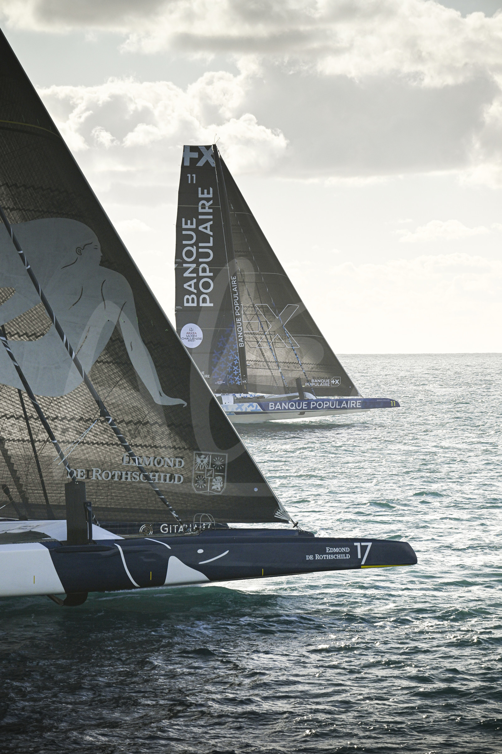 | Description | BREST, FRANCE - JANUARY 07 : Maxi Edmond de Rothschild and Banque Populaire XI are pictured during start of the Arkea Ultim Challenge sailing race in Brest, France, on January 07, 2024. (photo by Vincent Curutchet / Alea) |