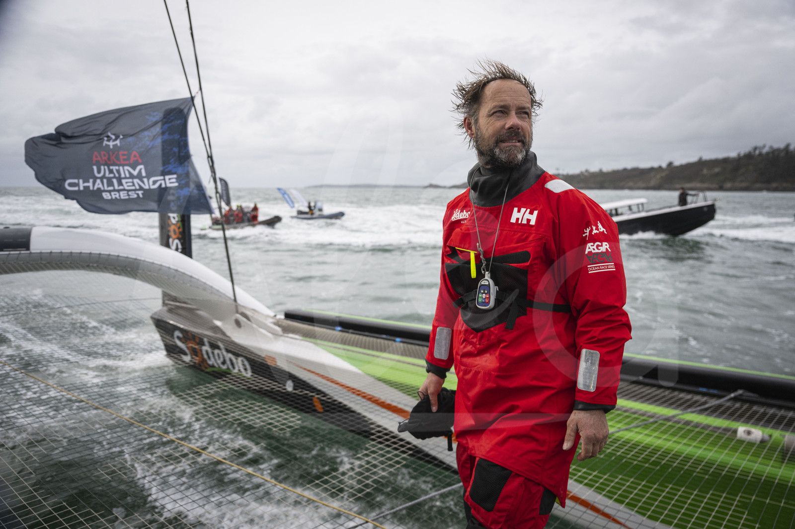 | Description | BREST, FRANCE - JANUARY 29: French skipper Thomas Coville on Sodebo Ultim 3 is pictured taking second place of the Arkea Ultim Challenge Brest, on January 29, 2024 in Brest, France. (Photo by Vincent Curutchet/ALeA) |