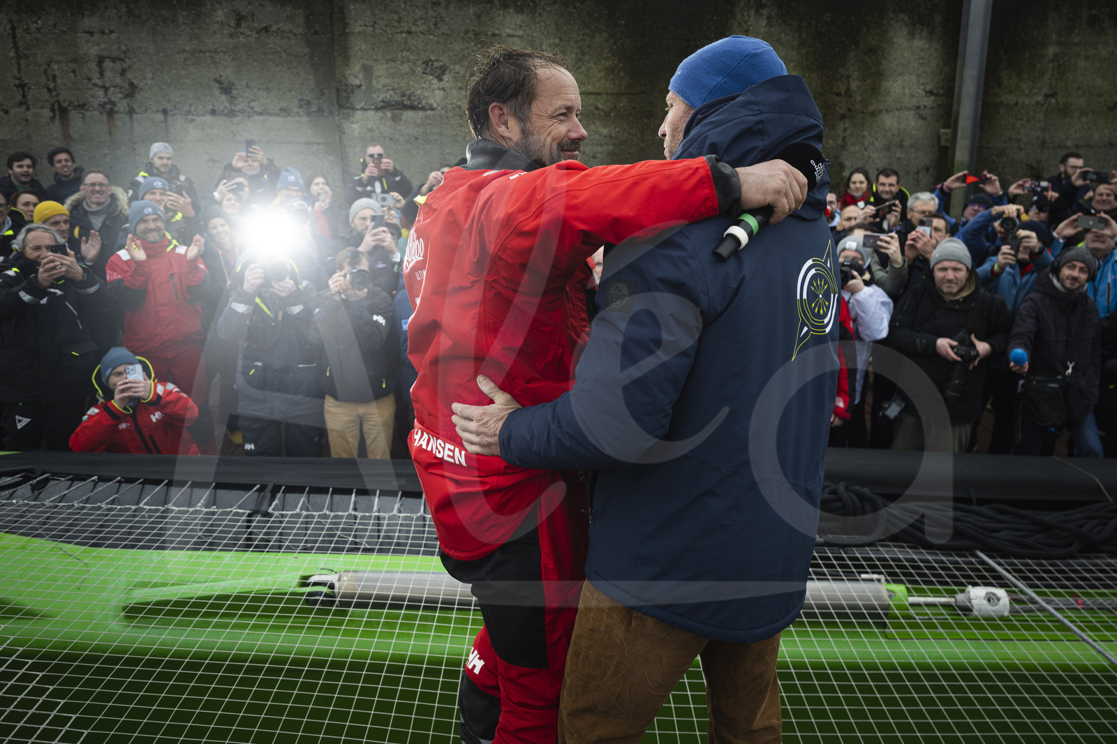 | Description | BREST, FRANCE - JANUARY 29: French skipper Thomas Coville on Sodebo Ultim 3 is pictured with winner Charles Caudrelier after taking second place of the Arkea Ultim Challenge Brest, on January 29, 2024 in Brest, France. (Photo by Vincent Curutchet/ALeA) |