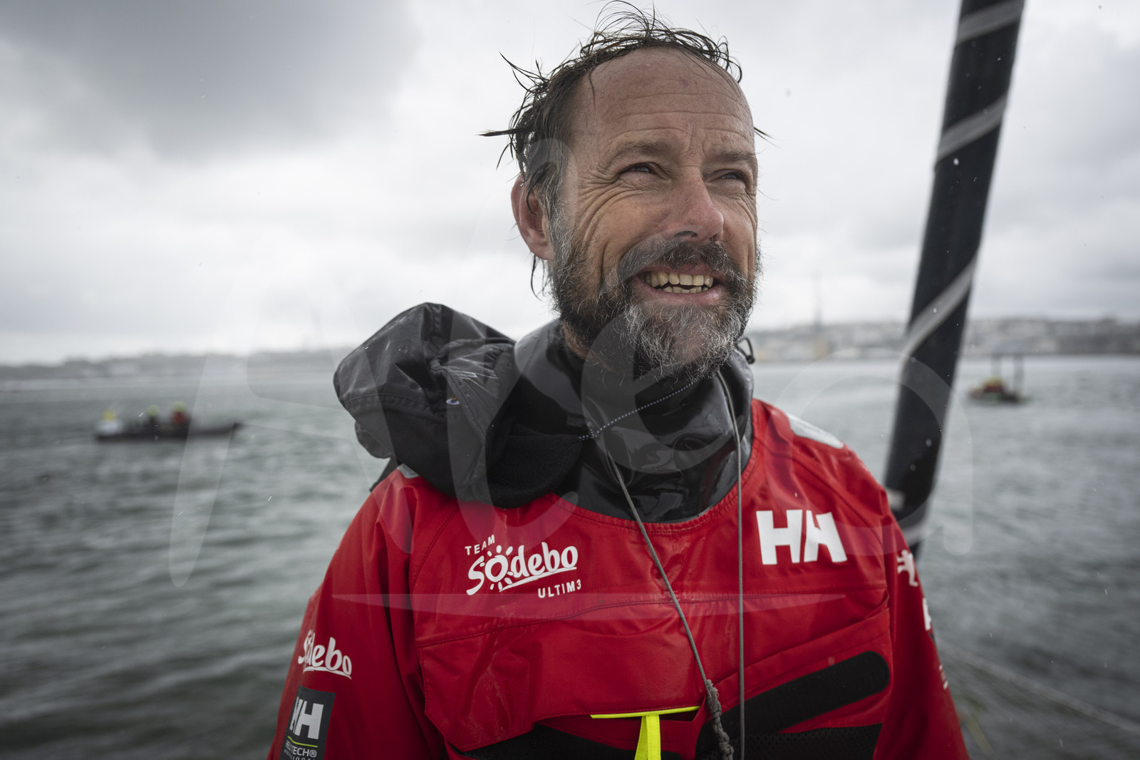 | Description | BREST, FRANCE - JANUARY 29: French skipper Thomas Coville on Sodebo Ultim 3 is pictured taking second place of the Arkea Ultim Challenge Brest, on January 29, 2024 in Brest, France. (Photo by Vincent Curutchet/ALeA) |