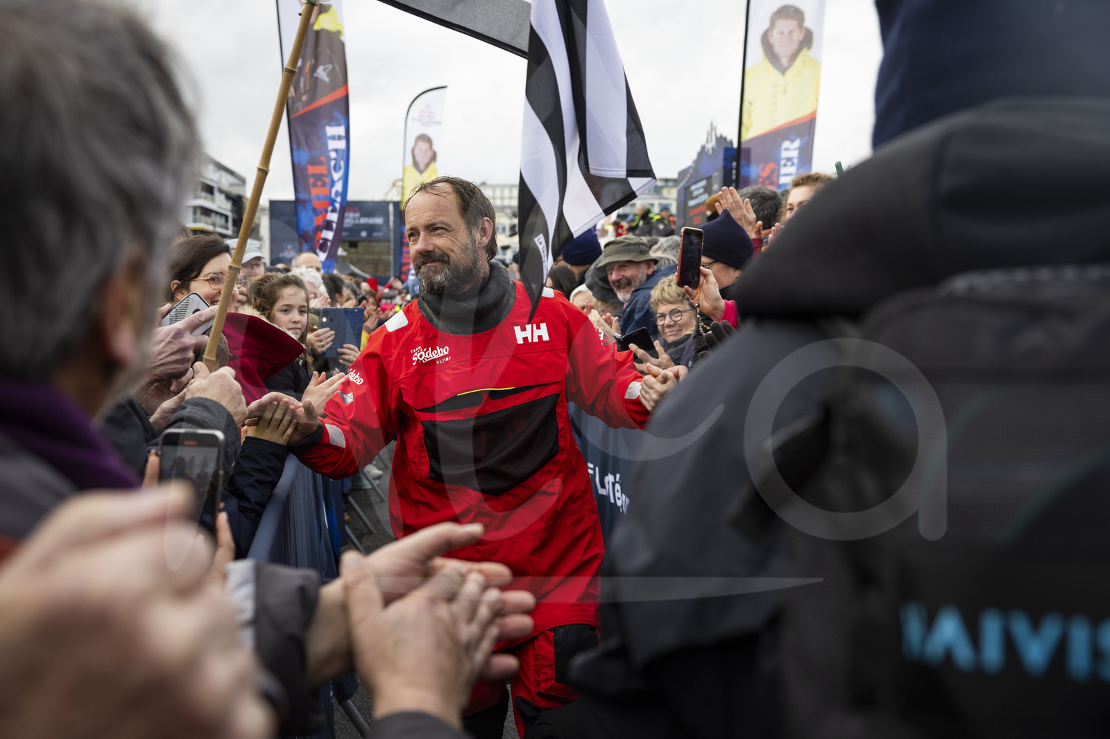 | Description | Thomas Coville, skipper de Sodebo Ultim, 2e de l’Arkea Ultim Challenge, Course autour du Monde en Solitaire, en 53 jours 1 heure 12 minutes et 40 secondes, à Brest le 29/02/2024, photo © Jean-Marie LIOT / Alea #### Thomas Coville, skipper of Sodebo Ultim, finishing second of the Arkea Ultim Challenge, Non stop Ultim solo handed race around the World, in second position in 53 days, 1 hour, 12 minutes et 40 secondes, off Brest on 2024, February 29, photo © Jean-Marie LIOT / Alea |