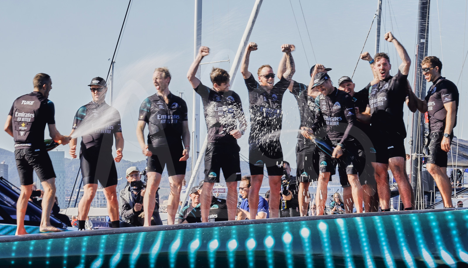 | Description | BARCELONA, SPAIN - OCTOBER 19, 2024 : Emirates Team New Zealand team is photographed celebrating after winning the 37 America’s Cup, on October 19, 2024, in Barcelona, Spain (photo by Carlo Borlenghi / Alea) |