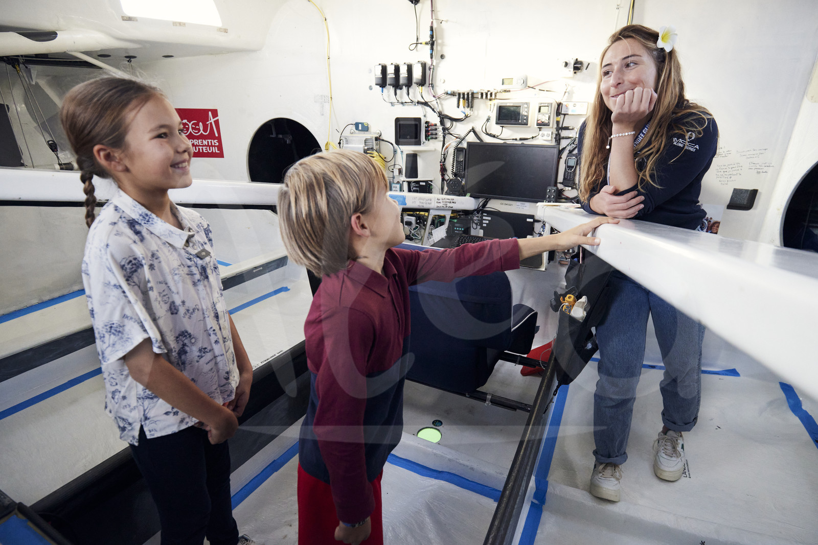 | Description | LES SABLES D'OLONNE, FRANCE - NOVEMBER 3, 2024: Rose has won the Vaiana 2 contest and a visit of DeVenir with skipper Violette Dorange during prestart of the Vendee Globe, on 3 November, 2024 in Les Sables d'Olonne, France. (Photo by Anne Beauge / Alea) |