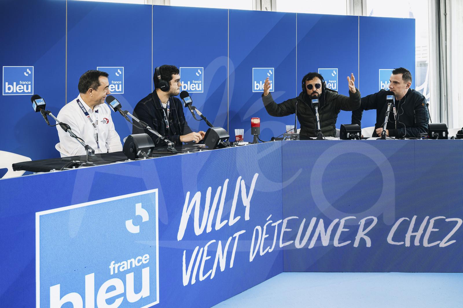 | Description | LES SABLES D'OLONNE, FRANCE - NOVEMBER 2, 2024: Comedian Willy Rovelli leads a broadcast show for France Bleu radio with Alain Leboeuf (President SAEM Vendee) as guest in the village of the Vendee Globe, on 2 November, 2024 in Les Sables d'Olonne, France. (Photo by Olivier Blanchet / Alea) |