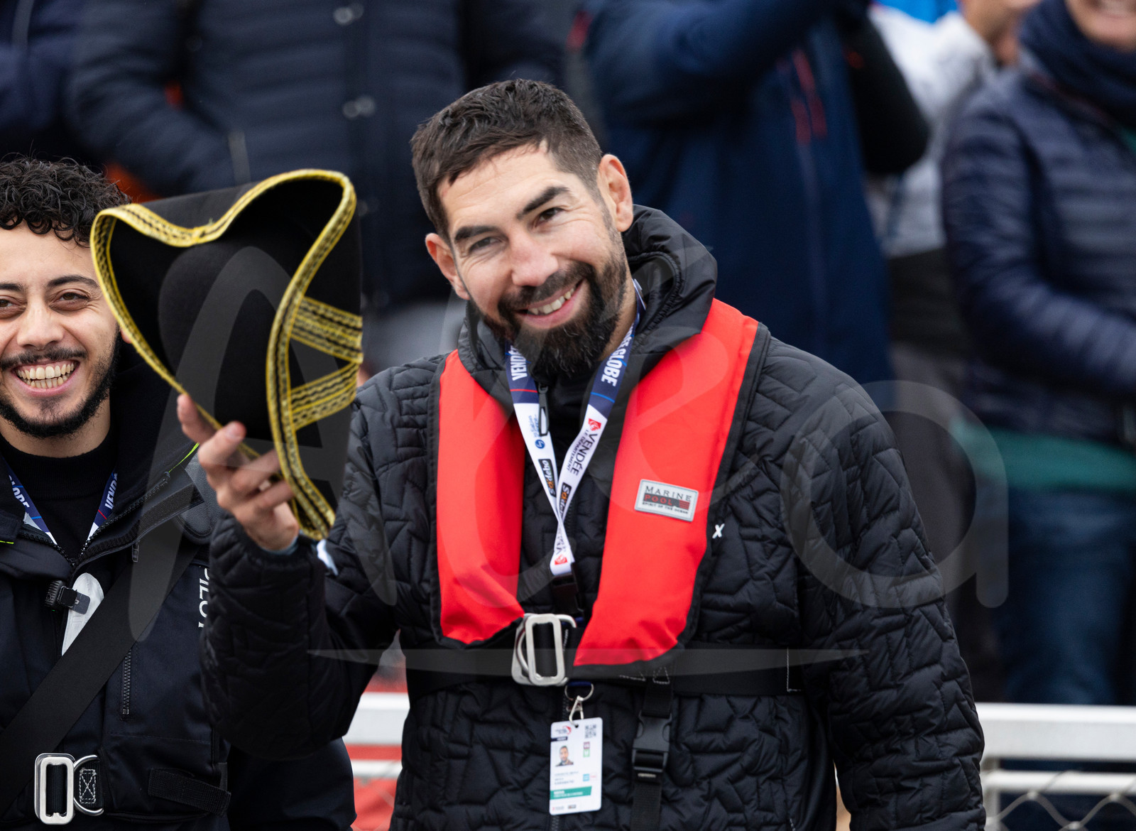 | Description | LES SABLES D'OLONNE, FRANCE - NOVEMBER 10, 2024: Athlete Nikola Karabatic is photographed in the channel with a pirate outfit on Groupe APICIL skipper Damien Seguin (FRA) before start of the Vendee Globe, on November 10, 2024 in Les Sables d'Olonne, France - (Photo by Mark Lloyd / Alea) |