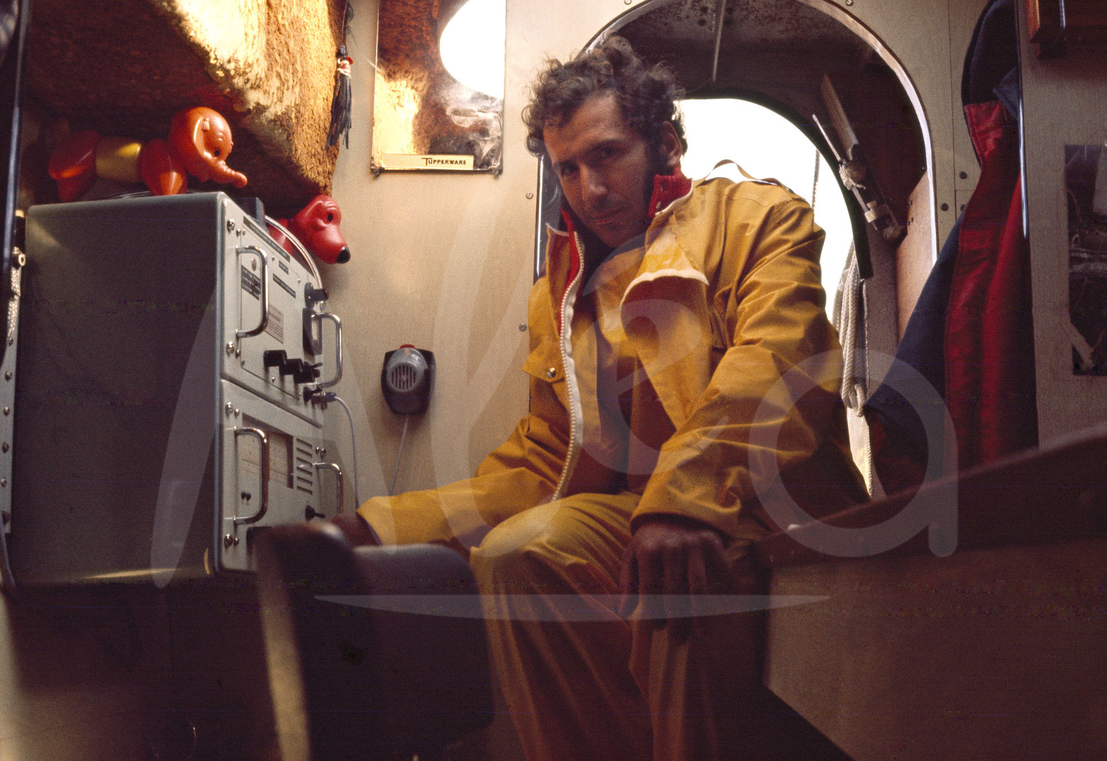 | Description | Face l'émetteur récepteur de Manureva, Alain Colas lors de son tour du monde en 1973 - Photo Bernard Rubinstein / Alea |