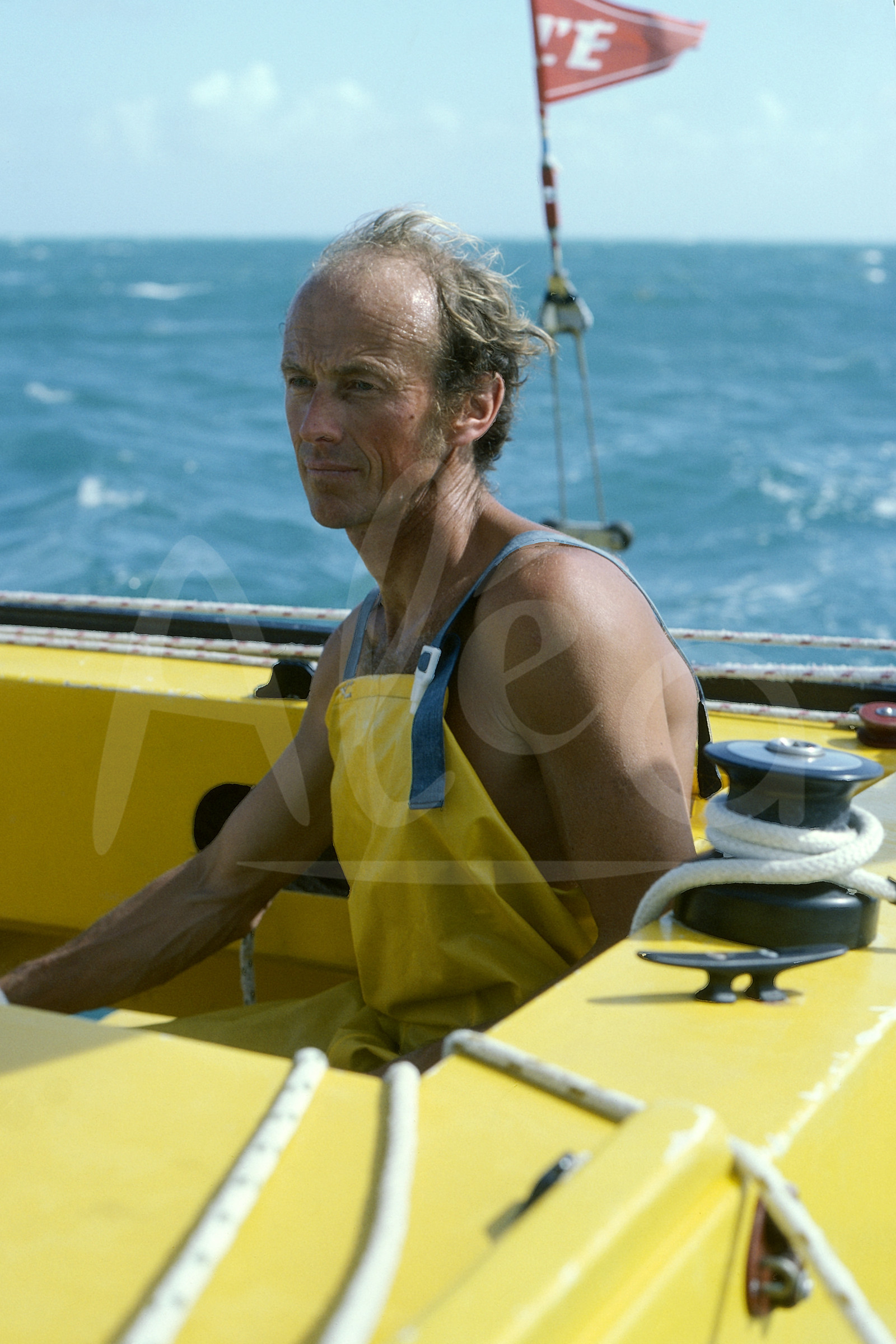 | Description | Skipper Mike Birch, Olympus Photo, à l'entrainement en amont du départ de la Route du Rhum, à Saint-Malo, Bretagne, en Septembre 1978 - Photo Bernard Rubinstein / ALEA |