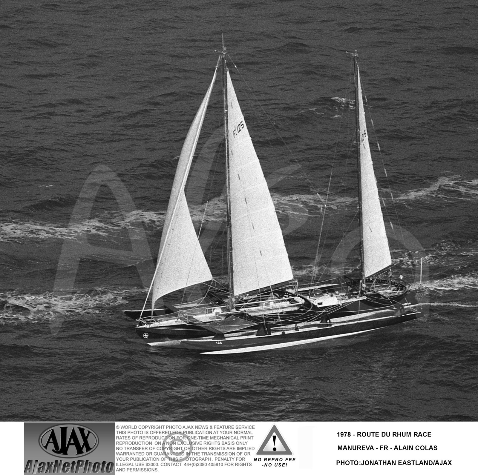 | Description | AJAX NEWS PHOTOS - 5TH NOVEMBER,1978 - ST.MALO, FRANCE. - START OF THE FIRST ROUTE DU RHUM RACE IN THE BAE OF ST.MALO - ALAIN COLAS AT THE HELM OF HIS TRIMARAN MANUREVA (F125)..PHOTO:JONATHAN EASTLAND/AJAX / ALEA.REF: 780511_011 |