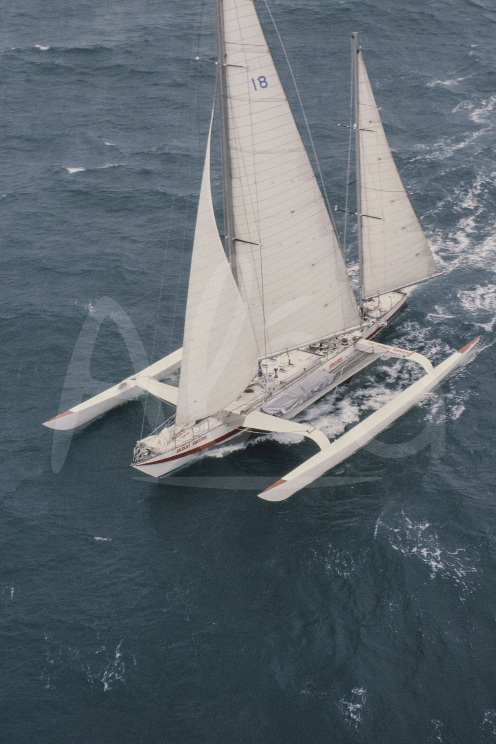 | Description | Skipper Olivier de Kersauson, trimaran Jacques Ribourel, lors du départ de la Route du Rhum, à Saint-Malo, Bretagne, le 8 Novembre 1982 - Photo Bernard Rubinstein / ALEA |