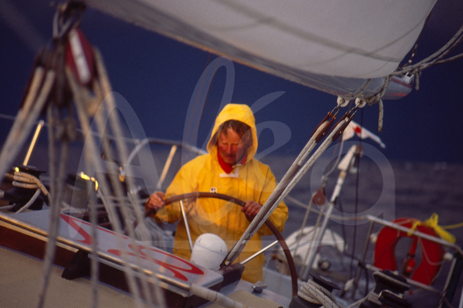 | Description | Skipper Michel Malinovsky, monocoque Kriter V, à l'entrainement en amont du départ de la Route du Rhum, à Saint-Malo, Bretagne, en Novembre 1978 - Photo Bernard Rubinstein / ALEA |