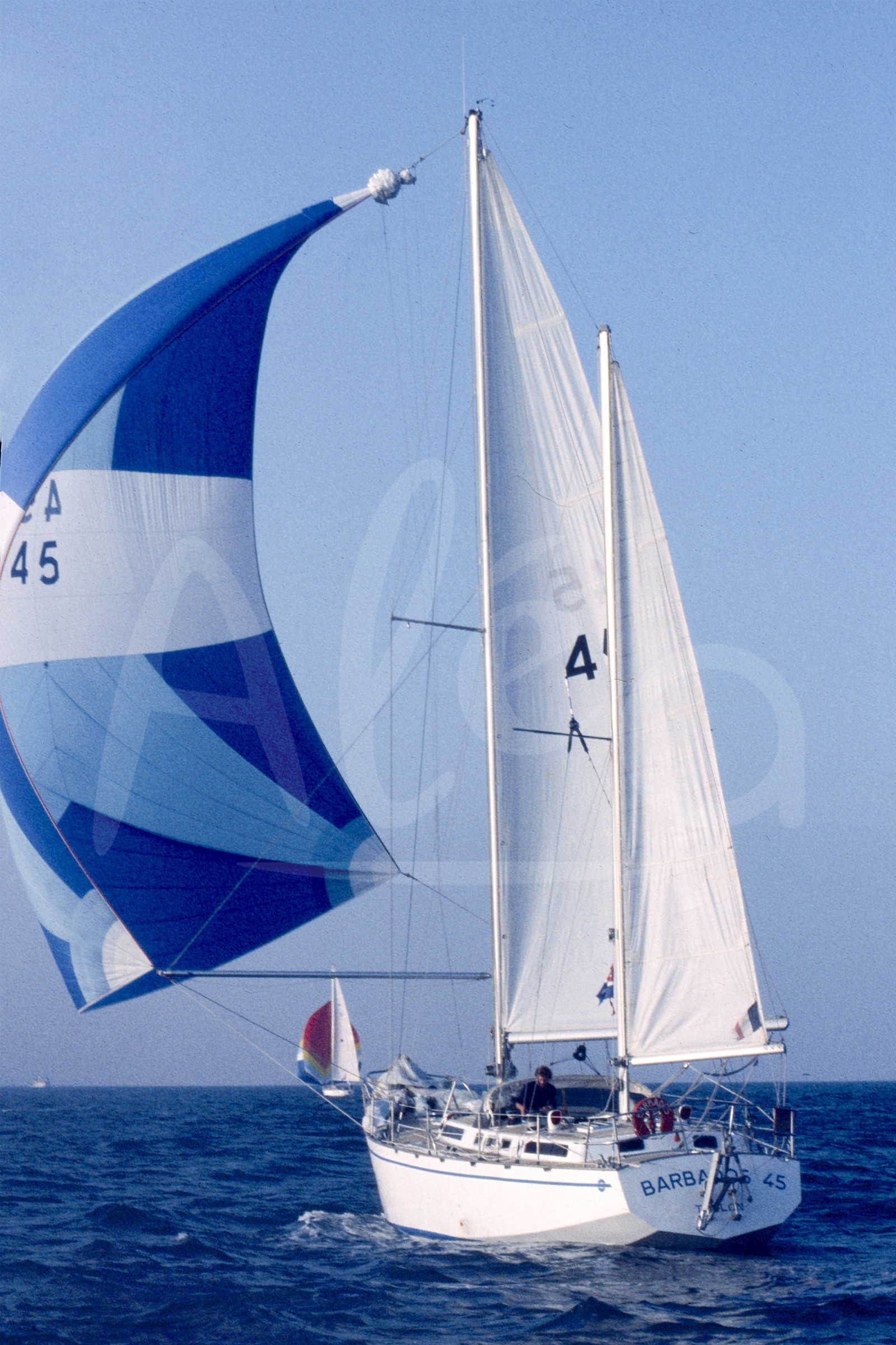| Description | Skipper Jean-Pierre Barrault, Barbados, réglant le bateau en amont du départ de la Route du Rhum, à Saint-Malo, Bretagne, en Novembre 1978 - Photo Bernard Rubinstein / ALEA |