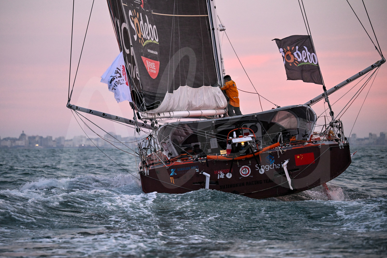 | Description | LES SABLES D’OLONNE, FRANCE - FEBRUARY 18, 2025 : Singchain Team Haikou skipper Jingkun Xu (CN) is photographed taking 30th place in the Vendee Globe, on February 18, 2025 in Les Sables d'Olonne, France - (Photo by Jean-Louis Carli / Alea) |