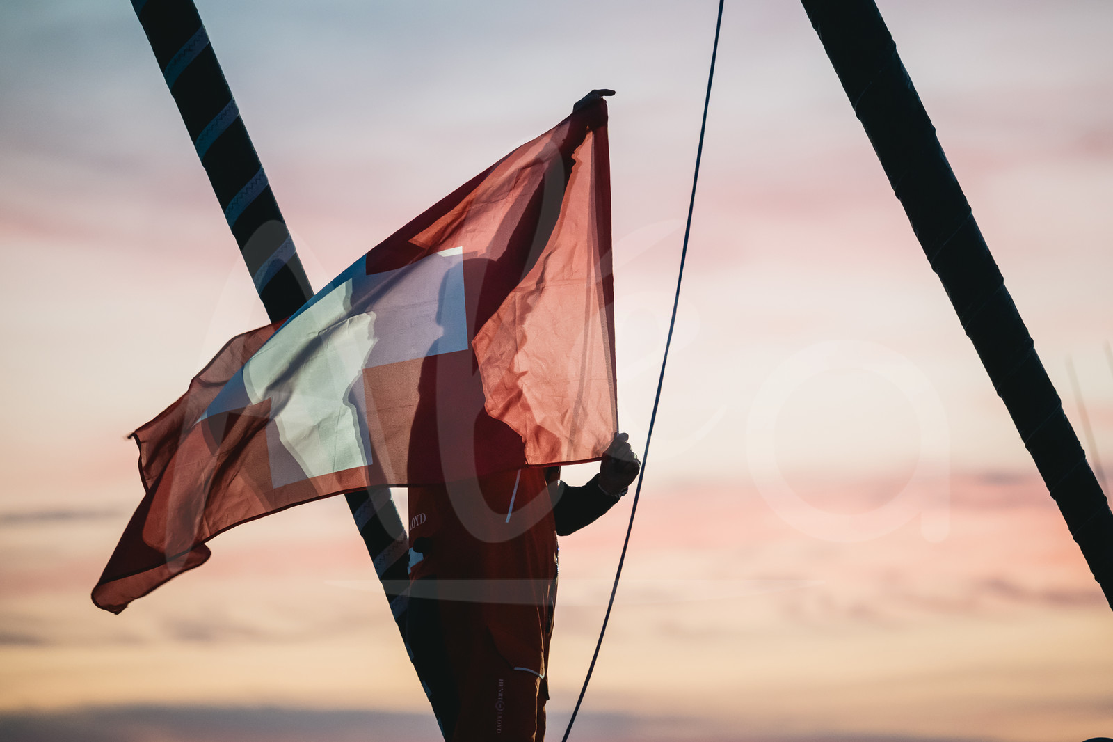 | Description | LES SABLES D’OLONNE, FRANCE - FEBRUARY 17, 2025 : Tut Gut. Sailing skipper Oliver Heer (SUI) is celebrating with a Swiss flag taking 29th place in the Vendee Globe, on February 17, 2025 in Les Sables d'Olonne, France - (Photo by Jean-Louis Carli / Alea) |