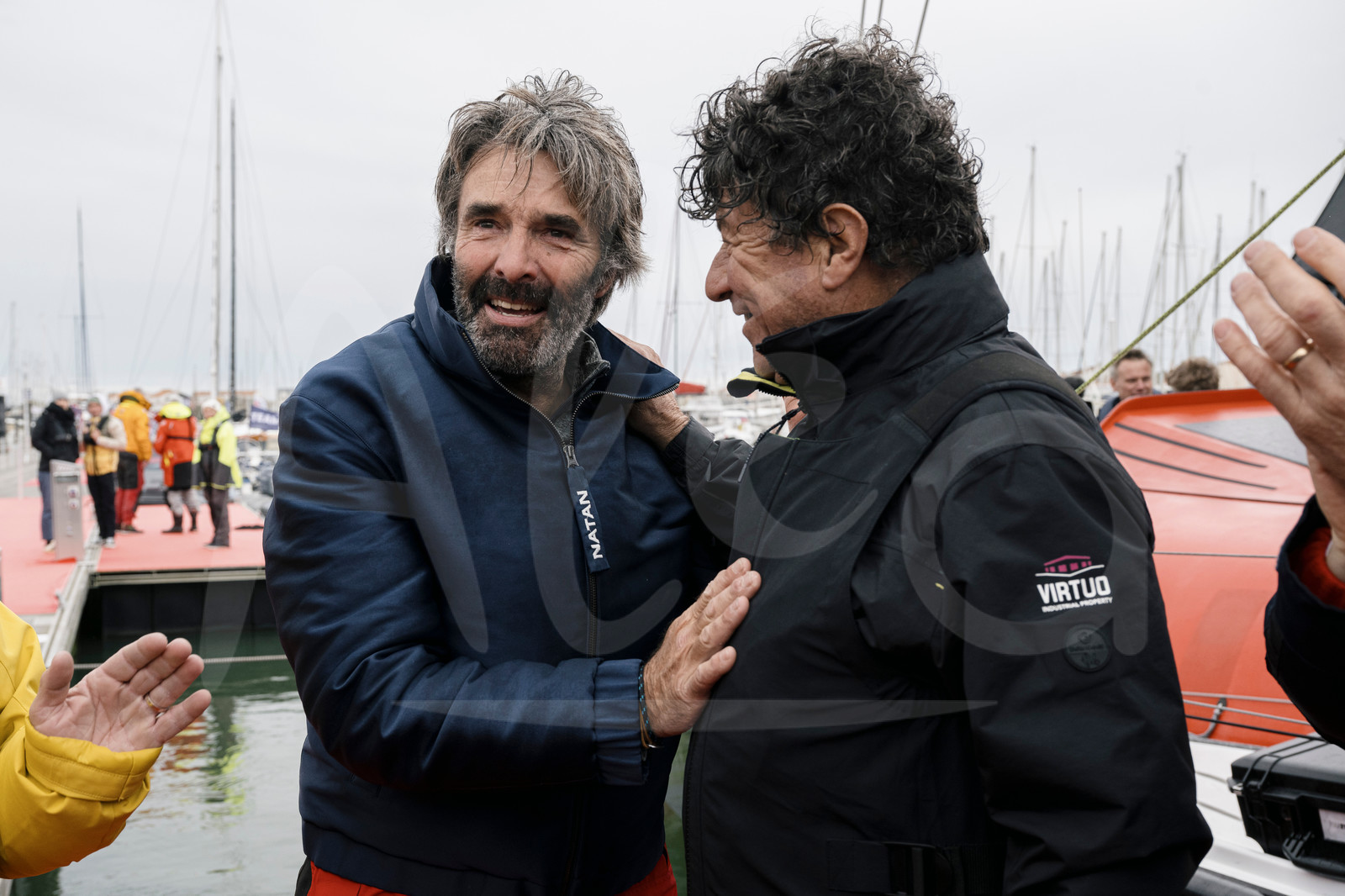 | Description | LES SABLES D’OLONNE, FRANCE - MARCH 08, 2025 : D’Ieteren Group skipper Denis Van Weynbergh (BEL) is congratulated by skipper Jean Le Cam after taking last place in the Vendee Globe, 1 day after the finish line had been closed sport-wise, hence not being classified, on March 08, 2025 in Les Sables d'Olonne, France - (Photo by Olivier Blanchet / Alea) |