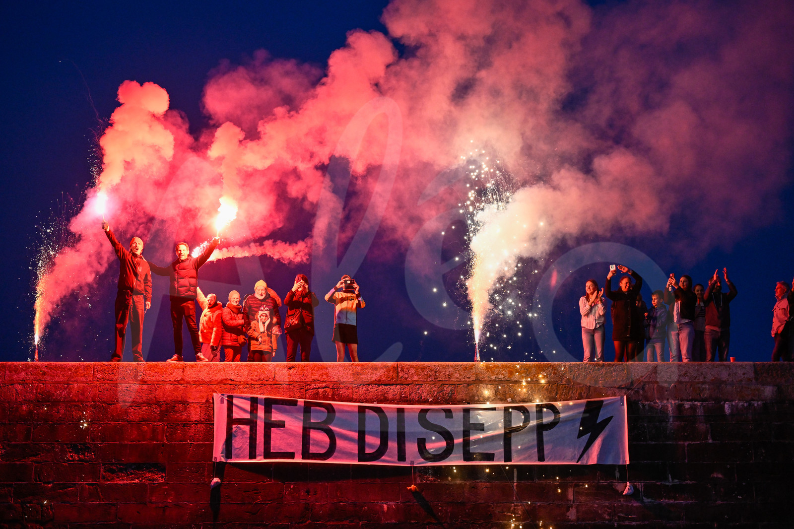 | Description | LES SABLES D’OLONNE, FRANCE - FEBRUARY 17, 2025 : Tut Gut. Sailing skipper Oliver Heer (SUI) is celebrating with flares taking 29th place in the Vendee Globe under a very calm weather, on February 17, 2025 in Les Sables d'Olonne, France - (Photo by Jean-Louis Carli / Alea) |