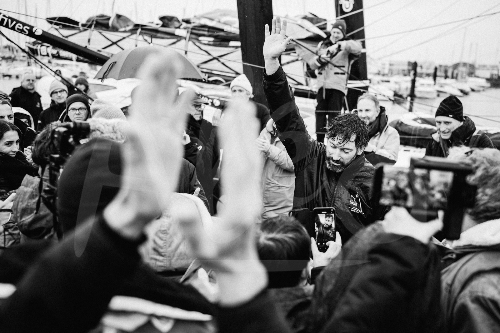 | Description | LES SABLES D’OLONNE, FRANCE - FEBRUARY 09, 2025 : Fives Group - Lantana Environnement skipper Louis Duc (FRA) is celebrating after taking 26th place in the Vendee Globe, on February 09, 2025 in Les Sables d'Olonne, France - (Photo by Jean-Louis Carli / Alea) |