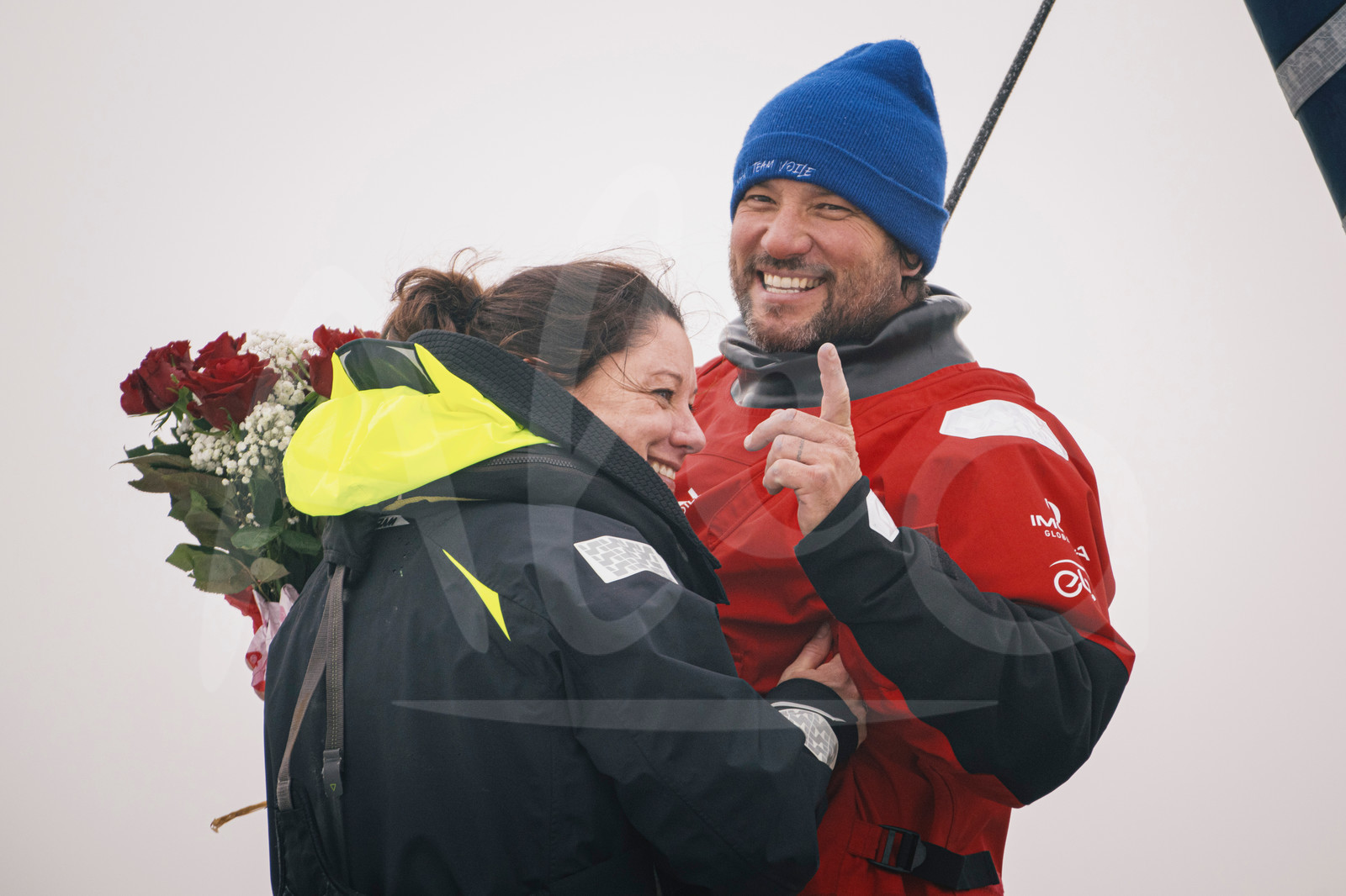 | Description | LES SABLES D’OLONNE, FRANCE - FEBRUARY 14, 2025 : HUMAN Immobilier skipper Antoine Cornic (FRA) is photographed with his wife after taking 28th place in the Vendee Globe, on February 14, 2025 in Les Sables d'Olonne, France - (Photo by Vincent Curutchet / Alea) |