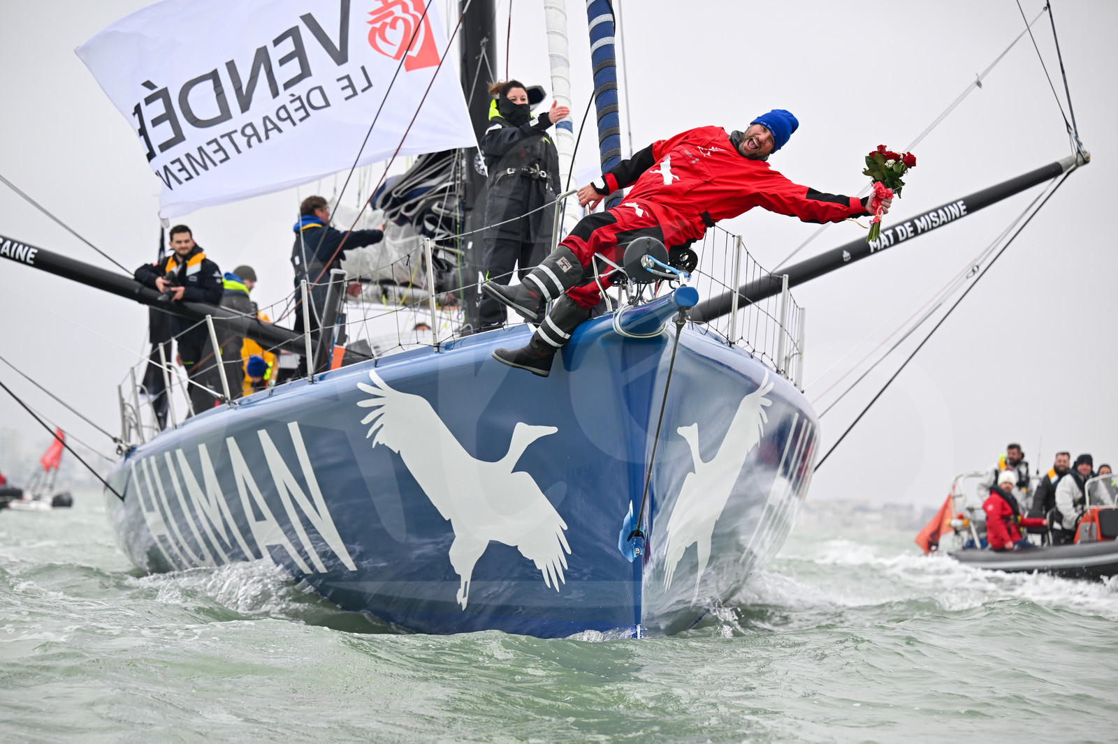 DescriptionLES SABLES D’OLONNE, FRANCE - FEBRUARY 14, 2025 : HUMAN Immobilier skipper Antoine Cornic (FRA) is photographed after taking 28th place in the Vendee Globe, on February 14, 2025 in Les Sables d'Olonne, France - (Photo by Jean-Louis Carli / Alea)