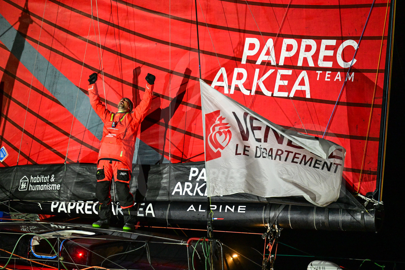 | Description | LES SABLES D'OLONNE, FRANCE - JANUARY 15, 2025 : PAPREC ARKÉA skipper Yoann Richomme (FRA) is photographed taking 2nd place in the Vendee Globe, on January 15, 2025 in Les Sables d'Olonne, France - (Photo by Vincent Curutchet / Alea) |