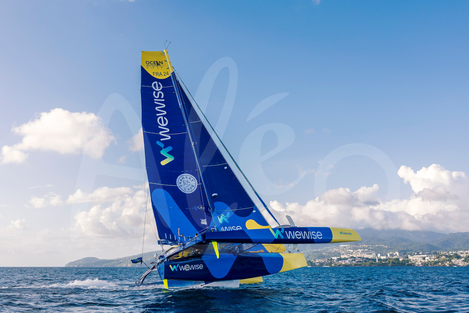 DescriptionFORT-DE-FRANCE, MARTINIQUE : Ocean Fifty Wewise, skippers Pierre Quiroga and Gaston Morvan are taking 2nd place in their category of the Transat Café l'OR 2025 on November 6, 2025 in Fort-de-France, Martinique. (Photo by Jean-Marie Liot / Alea)