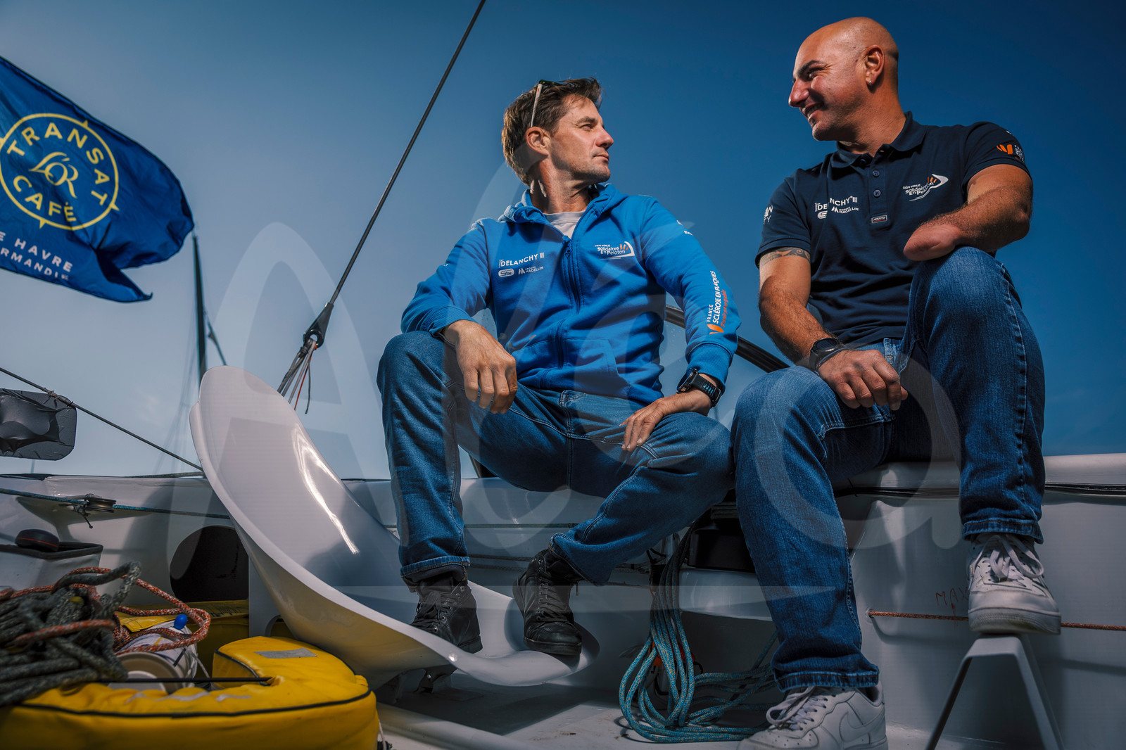 | Description | Ocean Fifty Solidaires En Peloton, skippers Thibaud Vauchel-Camus and Damien Seguin, are photographed before the Transat Café L’Or in Le Havre, France, on October 17, 2025. (Photo by Jean-Marie Liot / Alea) |