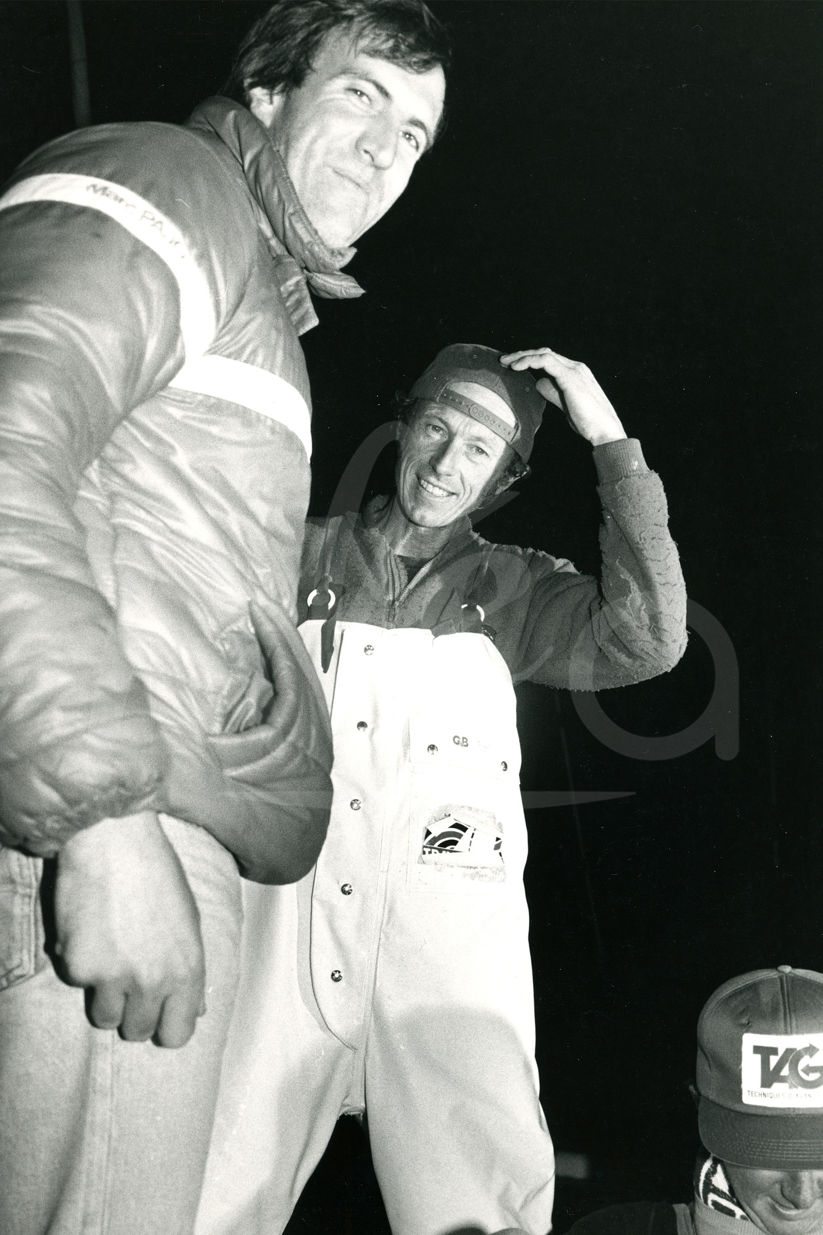 | Description | Skippers Marc Pajot, Elf Aquitaine, et Mike Birch, Vital, avant le départ de la Route du Rhum, à Saint-Malo, Bretagne, le 7 Novembre 1982 - Photo Bernard Rubinstein / ALEA |