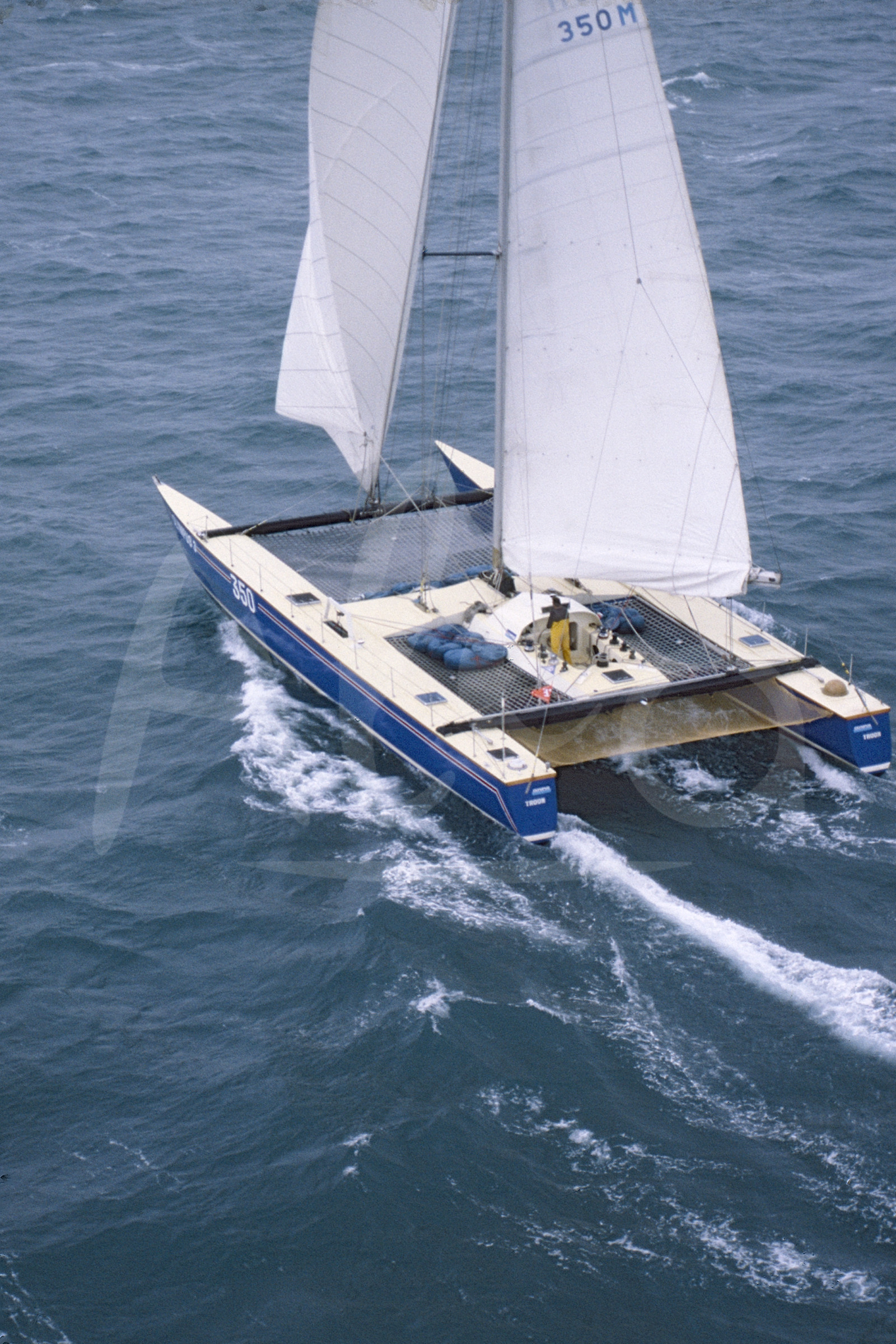 | Description | Skipper Robin Knox-Johnston, catamaran Olympus 3, pendant le départ de la Route du Rhum, à Saint-Malo, Bretagne, le 7 Novembre 1982 - Photo Bernard Rubinstein / ALEA |