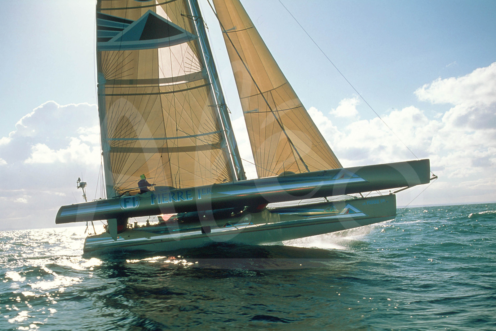 SAILING - ROUTE DU RHUM 1990 - PHOTO: JACQUES VAPILLON / ALEA. FLORENCE ARTHAUD (FRA) - PIERRE 1ER - WINNER