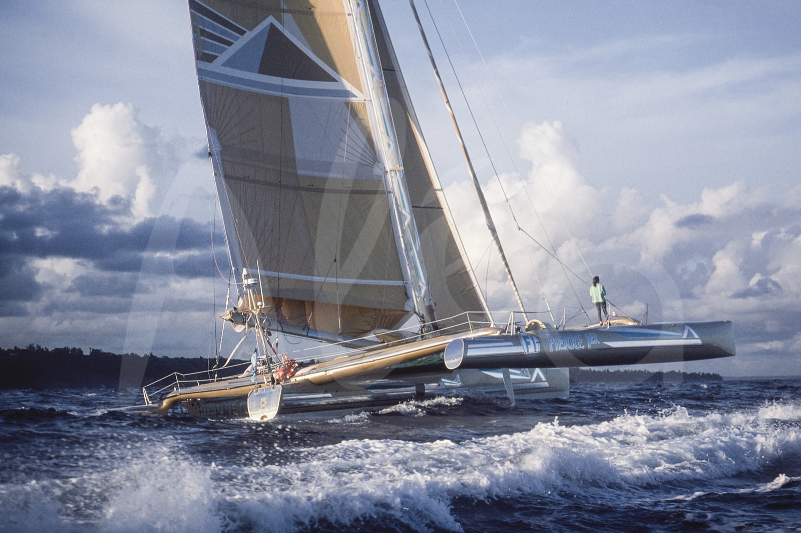 | Description | Vainqueur, Skipper Florence Arthaud, trimaran Pierre 1er, à l'arrivée de la Route du Rhum, à Pointe A Pitre, Guadeloupe, le 18 Novembre 1990 - Photo Bernard Rubinstein / ALEA |