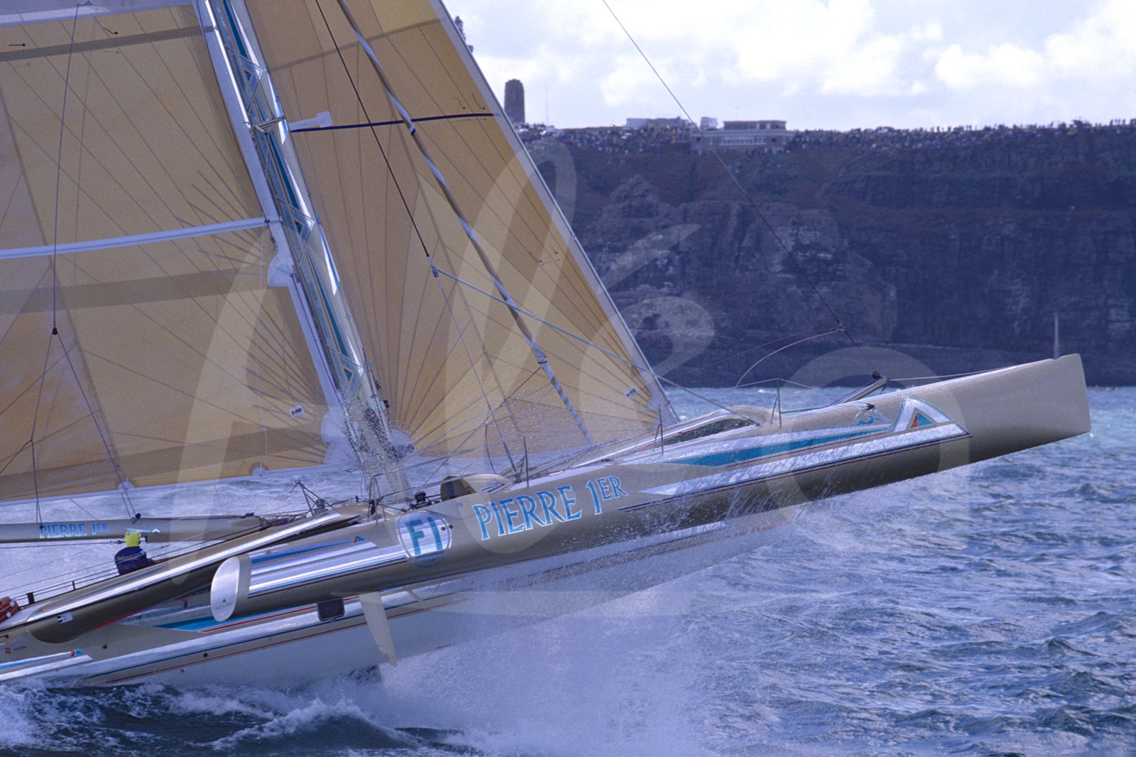 | Description | Action du trimaran Pierre 1er, skipper Florence Arthaud, au large du Cap Fréhel lors du départ de la Route du Rhum, à St-Malo, France, le 4 Novembre 1990 - Photo François Mousis / ALEA |
