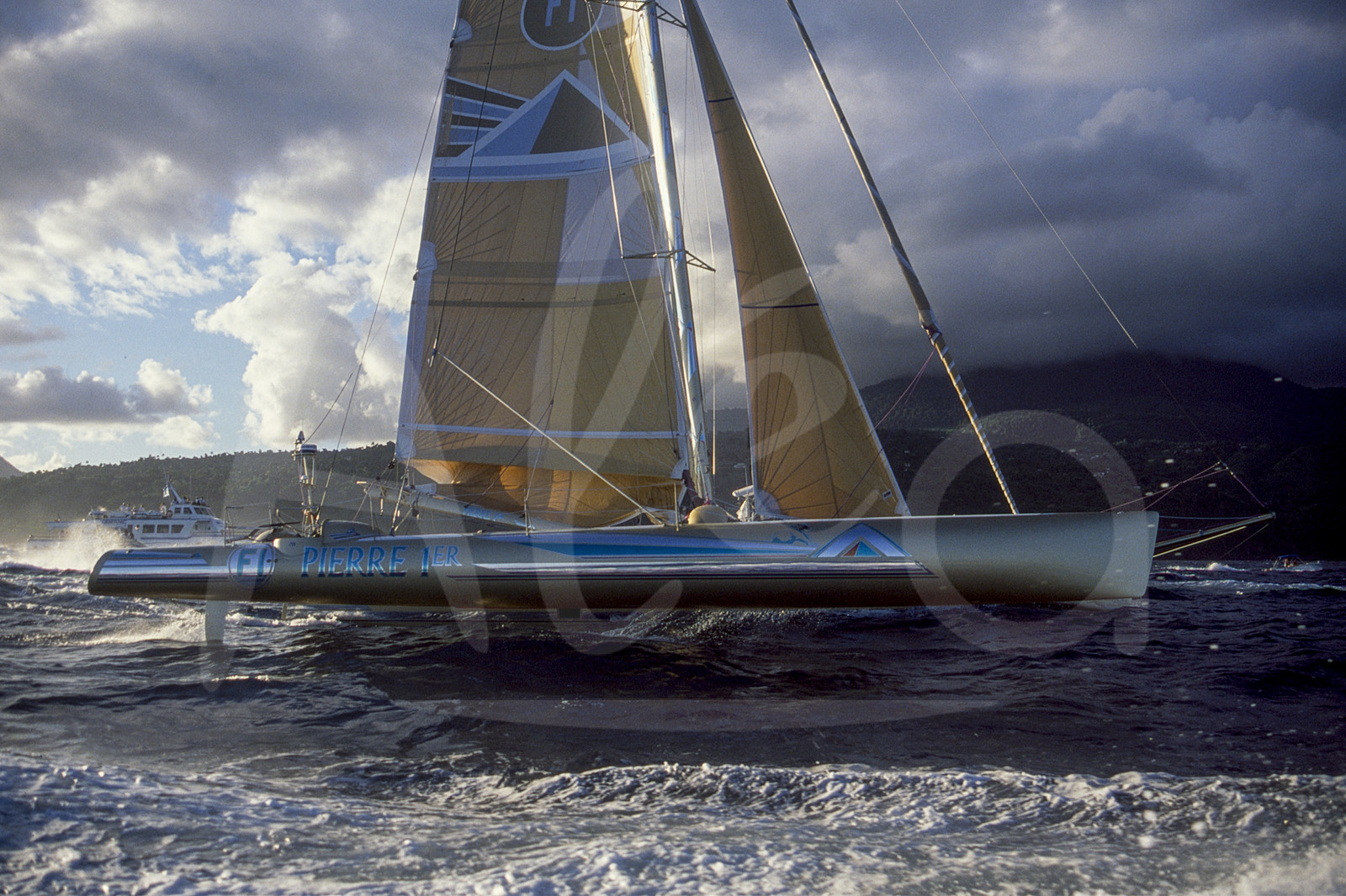 | Description | Vainqueur, Skipper Florence Arthaud, trimaran Pierre 1er, à l'arrivée de la Route du Rhum, à Pointe A Pitre, Guadeloupe, le 18 Novembre 1990 - Photo Bernard Rubinstein / ALEA |