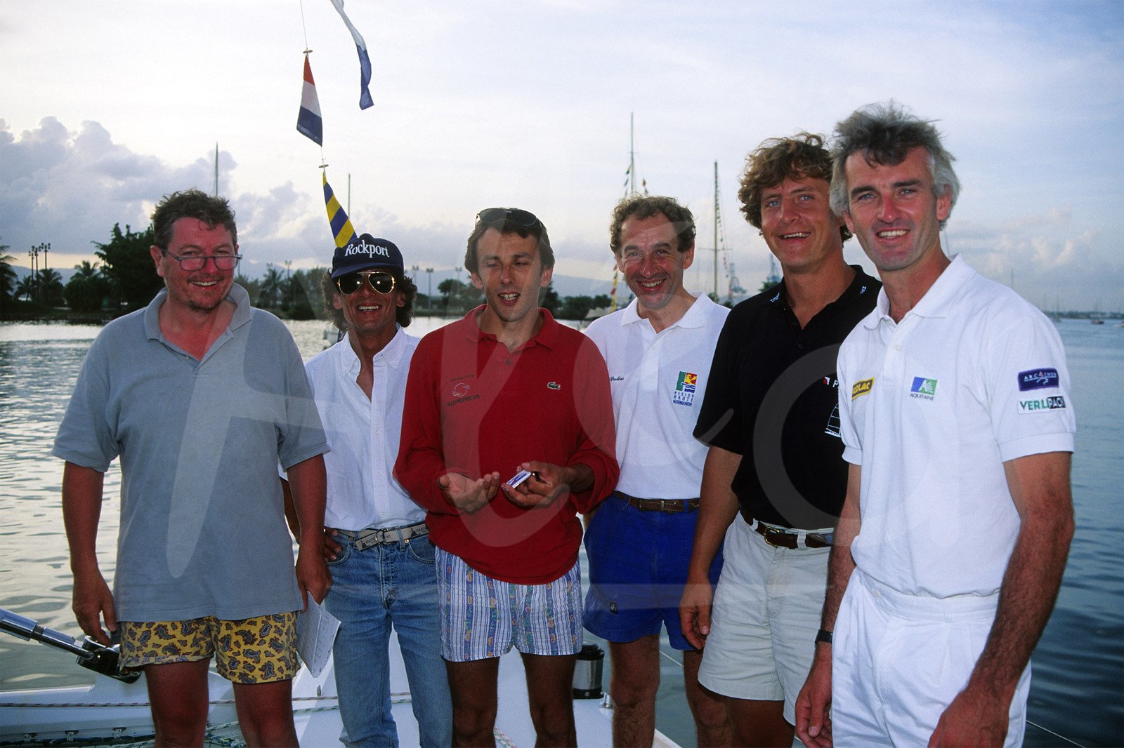 | Description | SAILING - TRANSATLANTIC RACE - ROUTE DU RHUM HISTORY - POINTE A PITRE (FRA) GUADELOUPE FINISH PHOTO : JEAN-JACQUES BERNARD / ALEA ROUTE DU RHUM 1994 - PASCAL HEROLD (FRA) / 7TH - GERRY ROUFS (CAN) / 6TH - ALAIN GAUTIER (FRA) / 4TH - PAUL VATINE (FRA) / 2ND - LAURENT BOURGNON (FRA) / WINNER - YVES PARLIER (FRA) / 3RD |