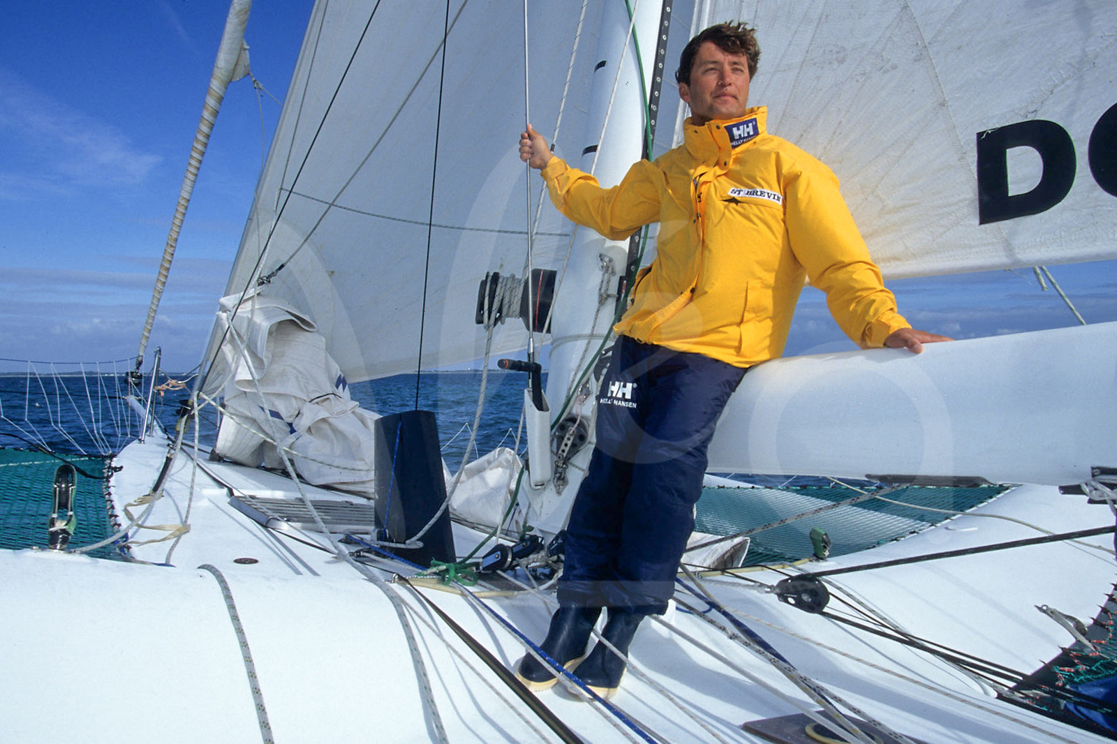 | Description | Yvan Bourgnon à l'entrainement à bord de son ORMA YPREMA avant le départ de la Route du Rhum 1998, baie de Quiberon, octobre 1998, Photo : Jean-Marie Liot / Alea.###.Yvan Bourgnon training onboard his ORMA YPREMA before the start of la Route du Rhum 1998, baie de Quiberon, october 1998, Photo : Jean-Marie Liot / Alea |