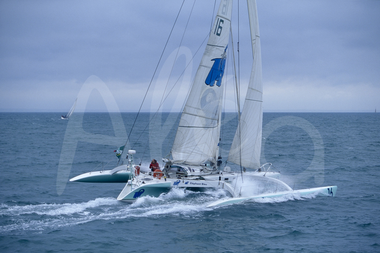 | Description | Skipper Mike Birch, trimaran Elephant Bleu, au départ de la Route du Rhum, à St Malo, Bretagne, le 8 Novembre 1998 - Photo Bernard Rubinstein / ALEA |