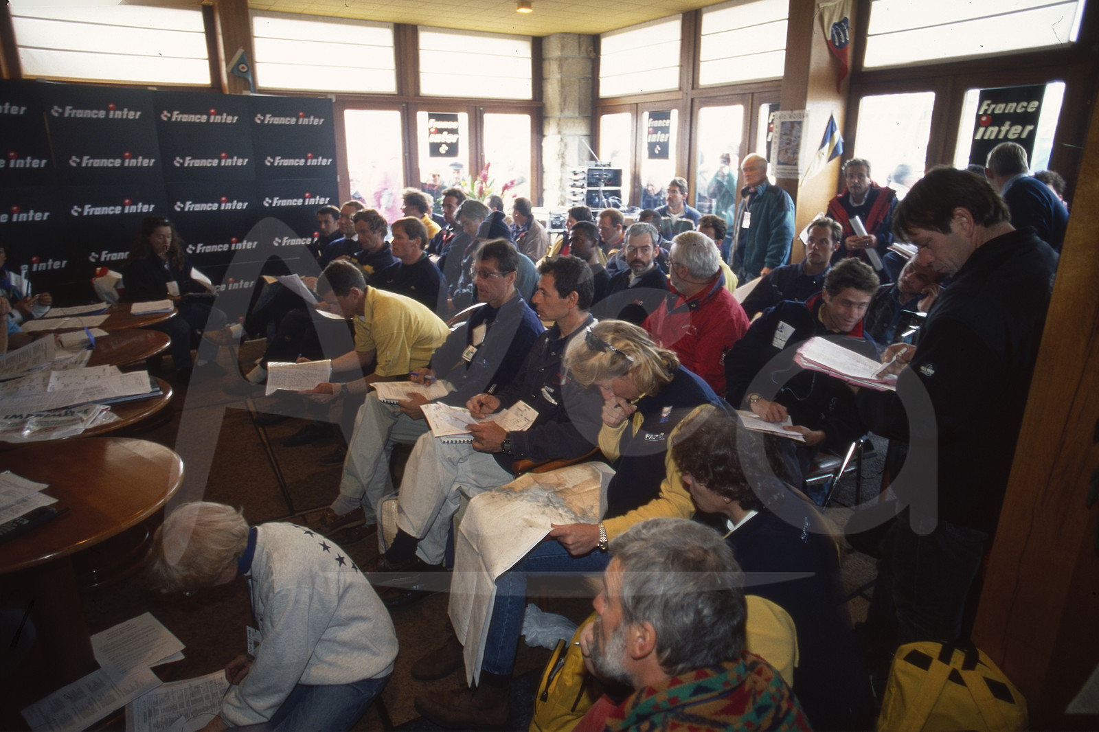 | Description | Briefing Skippers avant le départ de la Route du Rhum, à St Malo, Bretagne, le 8 Novembre 1998 - Photo Bernard Rubinstein / ALEA |