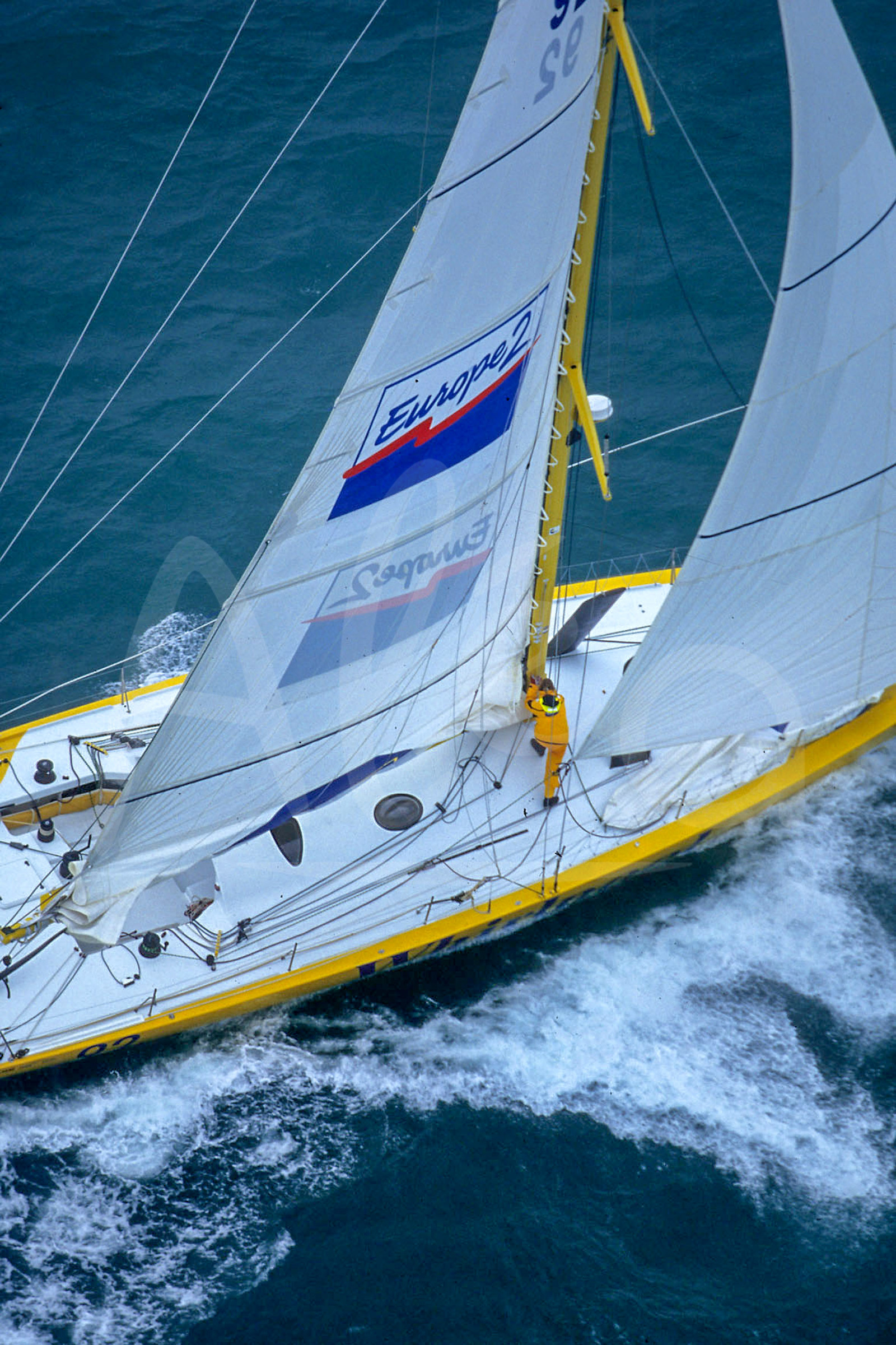 | Description | IMOCA Whirlpool, skipper Catherine Clabaud, départ de la Route du Rhum 1998, Photo : Jean-Marie Liot / Alea.###.IMOCA Whirlpool, skipper Catherine Clabaud, during la Route du Rhum 1998 start in Saint-Malo, Photo : Jean-Marie Liot / Alea. |