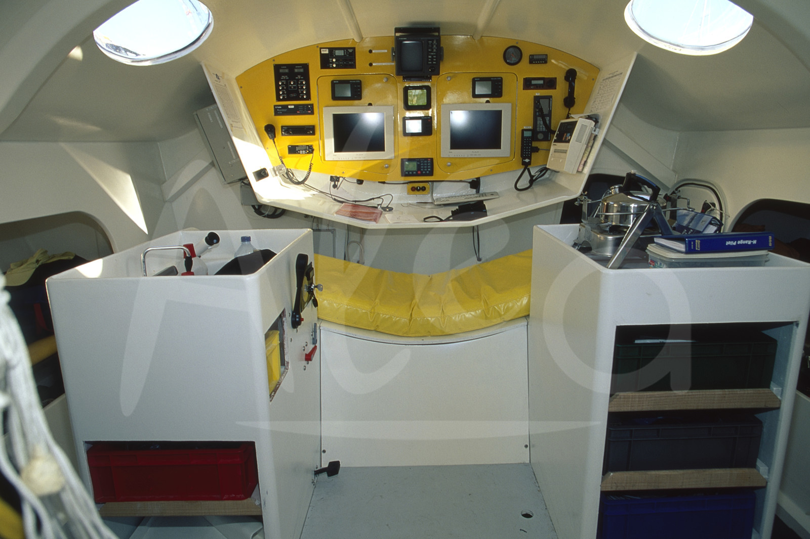 | Description | Illustration intérieur - Skipper Catherine Chabaud, Whirlpool - Europe 2, à l'entrainement avant le départ de la Route du Rhum, à St Malo, Bretagne, le 8 Octobre 1998 - Photo Bernard Rubinstein / ALEA |